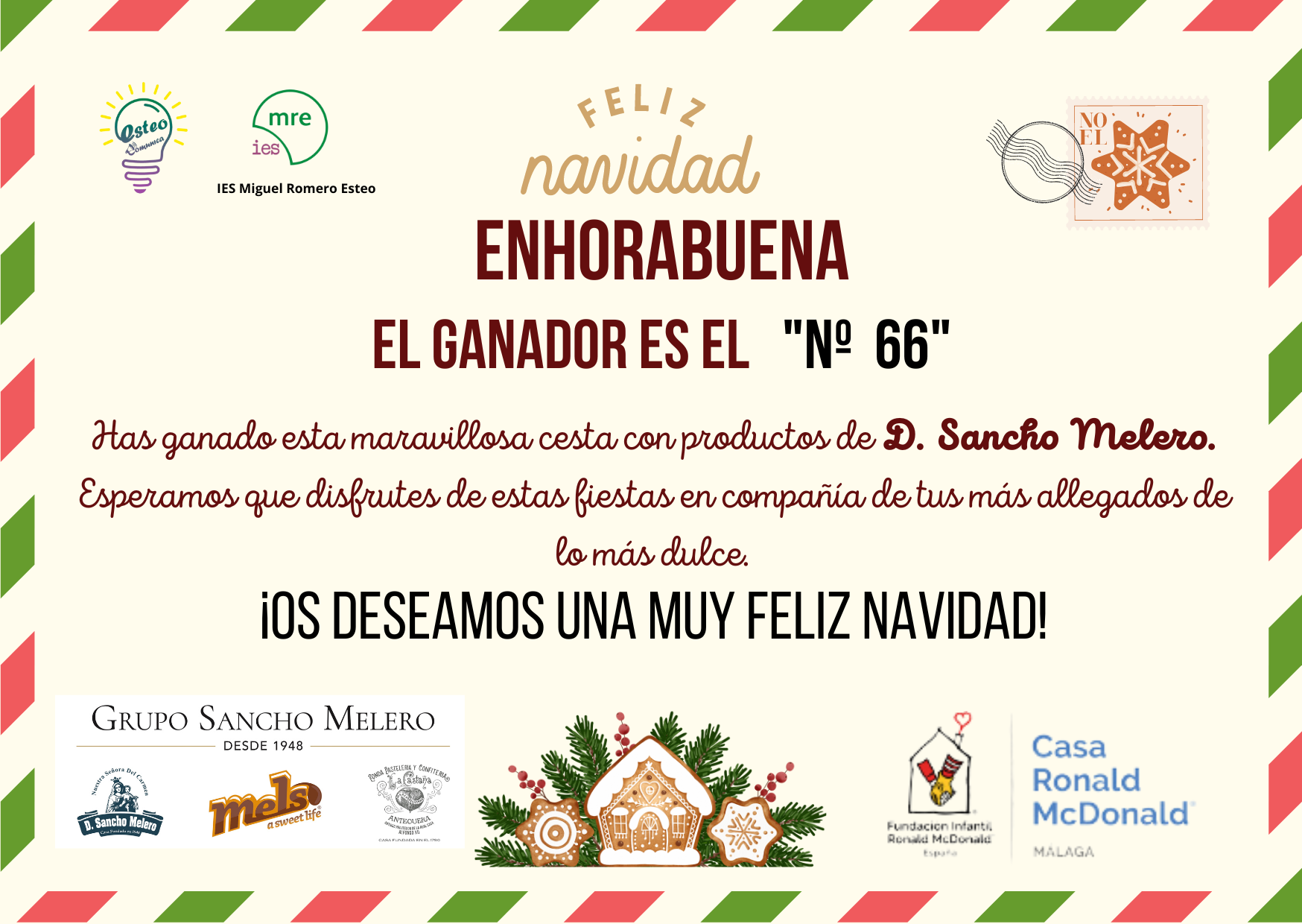 Queremos agradecer a la empresa a la empresa Sancho Melero por su colaboración y donarnos sus productos para llevara a cabo esta recaudación con la rifa solidaria que irá integra a la Fundación infantil casa Ronald McDonald de Málaga, sin ellos esto no habría sido posible.